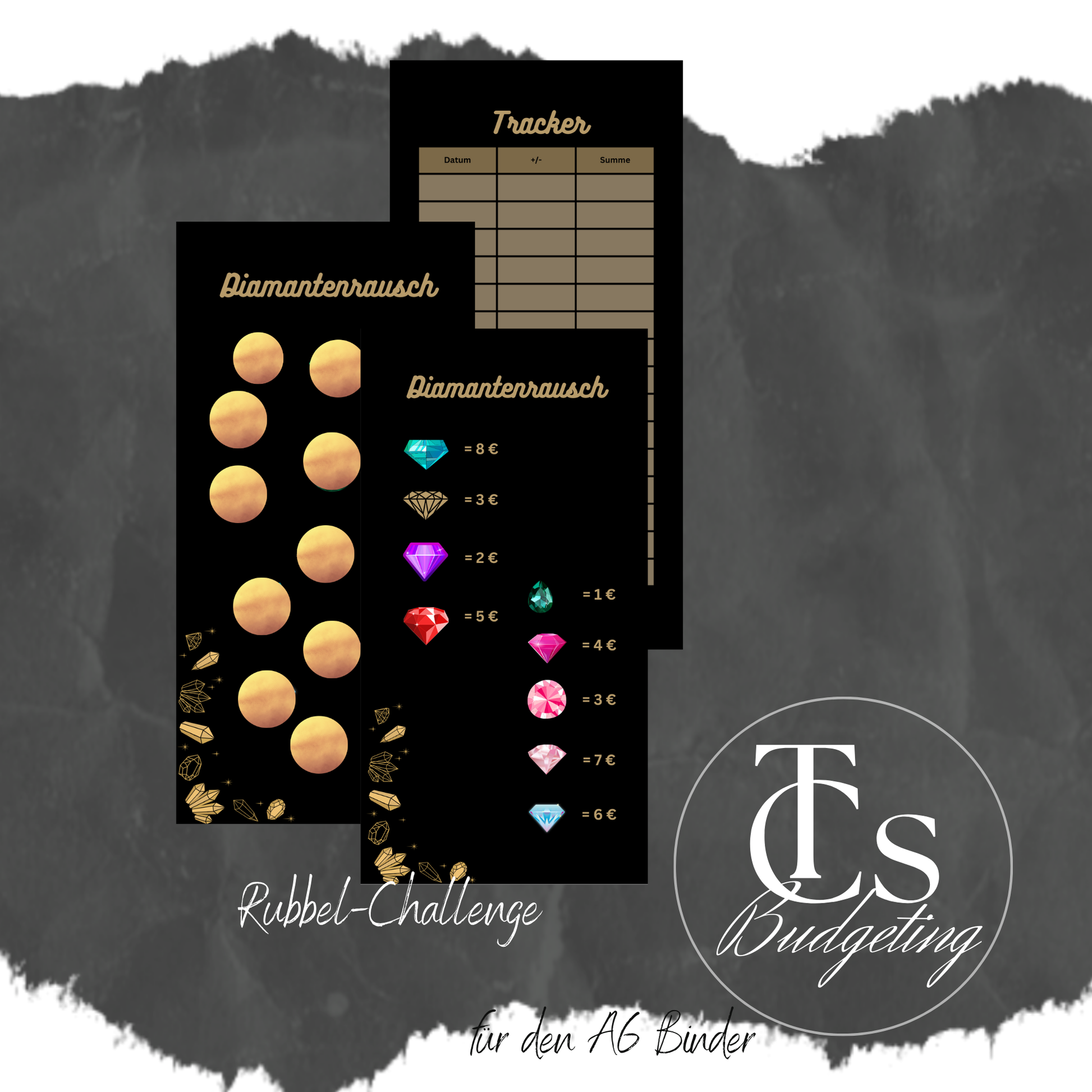 Hier bekommst du eine Rubbelchallenge auf 400g Papier aus der Druckerei sowie eine Preisliste, die dir die Preise der versteckten Diamanten offenbart. Auf der Rückseite der Rubbelchallenge befindet sich ein Tracker.