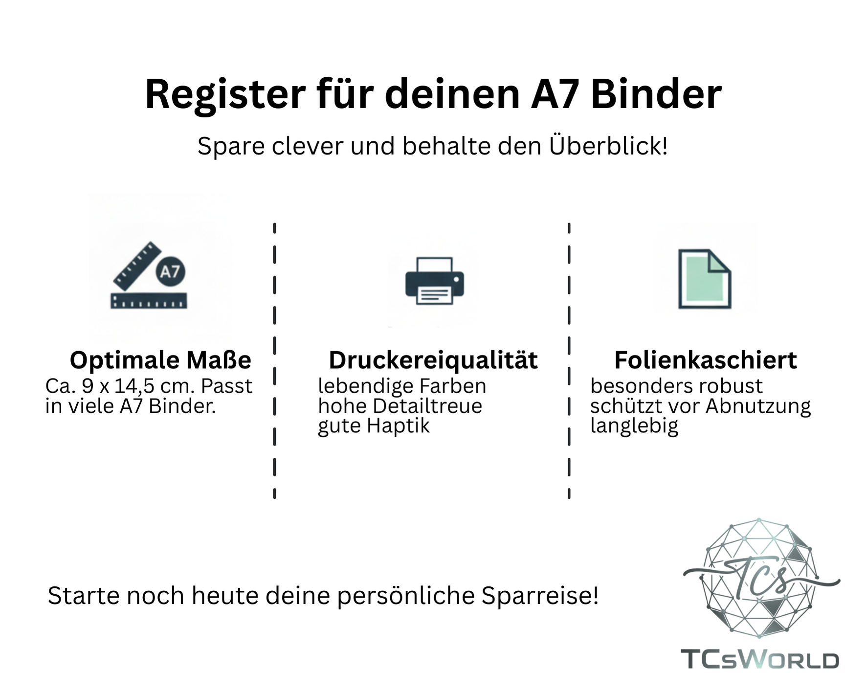 Hier erhältst du ein 6er Register für den A7 Binder. Erwürfle dir deine Challenge zum sparen.