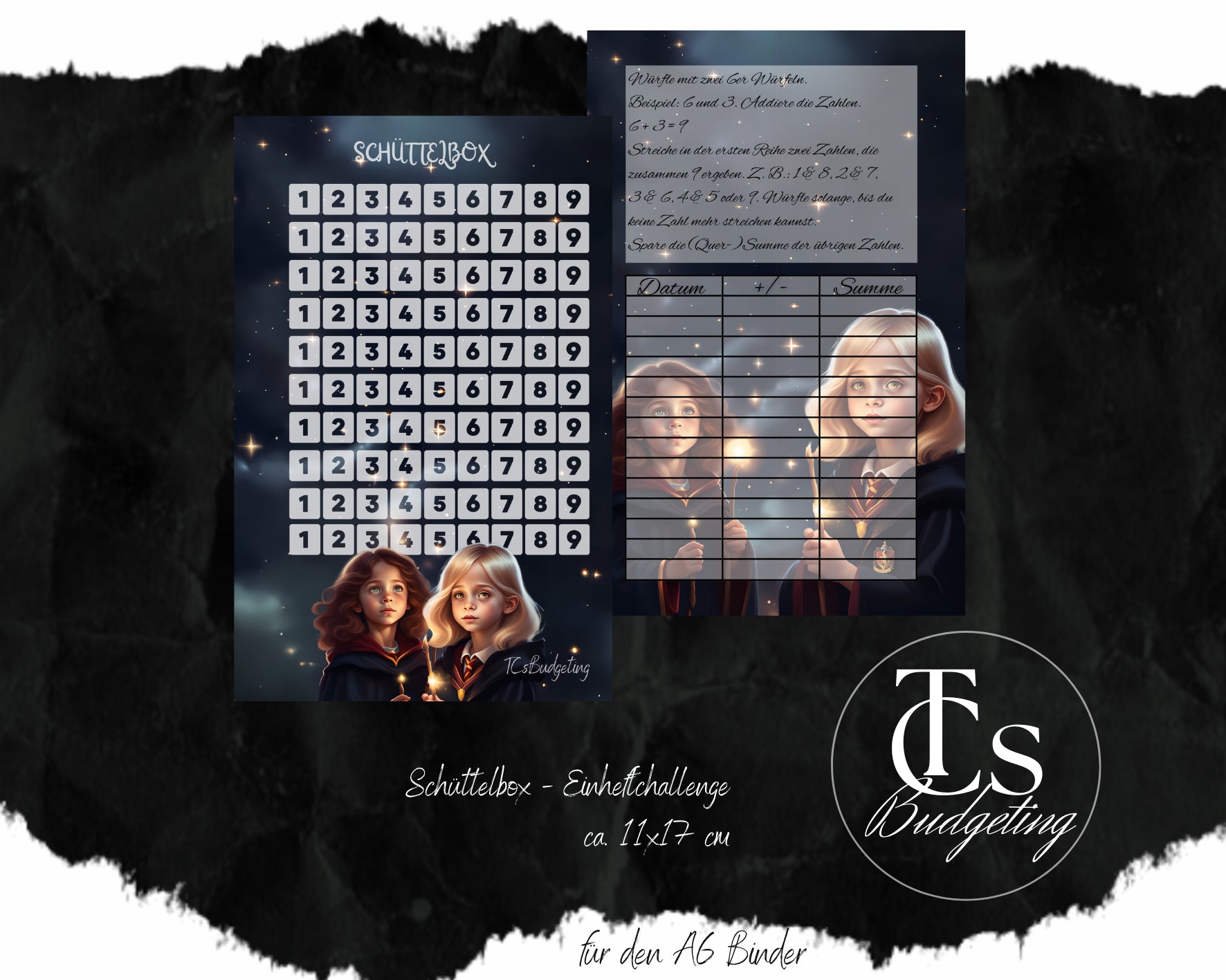 Hier bekommst du eine gelochte Einheft-Challenge für den A6 Binder. Die Challenge ist doppelseitig bedruckt und folienkaschiert