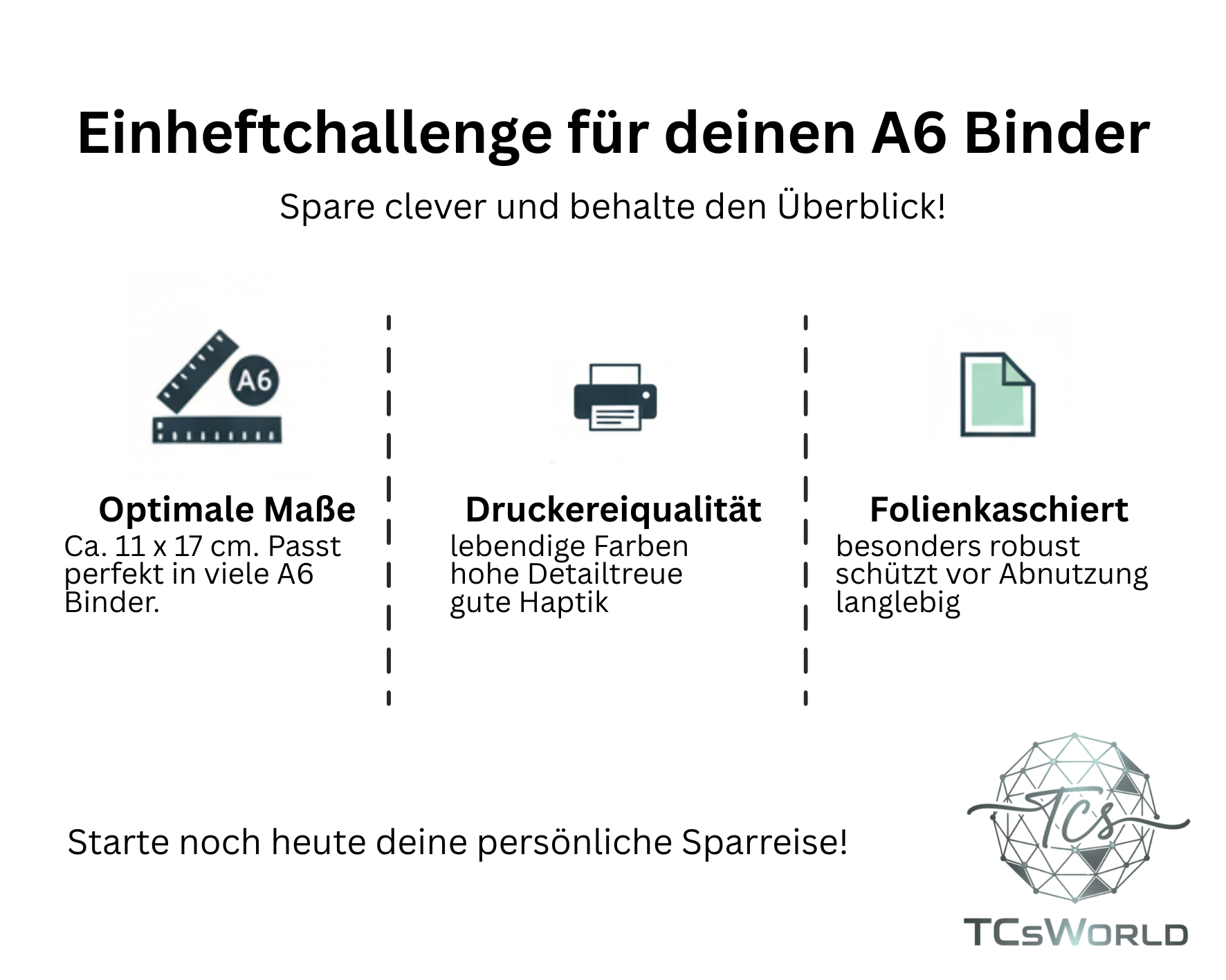 Hier bekommst du eine gelochte Einheft-Challenge für den A6 Binder. Die Challenge ist doppelseitig bedruckt.